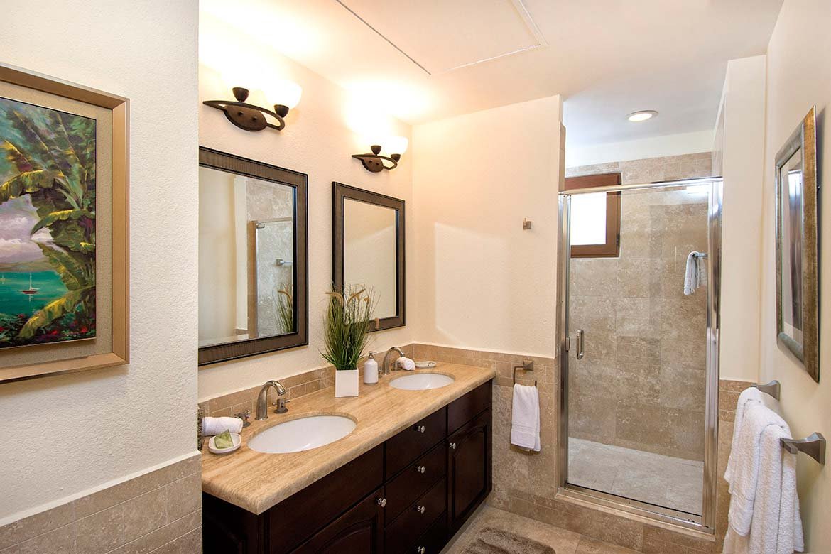 Bedroom 2 – Experience serenity in this beautifully appointed space offering a king-size bed, flat-screen Satellite TV, ample closet space, and a stylish bathroom with a shower, double vanity sinks, and built-in closets.