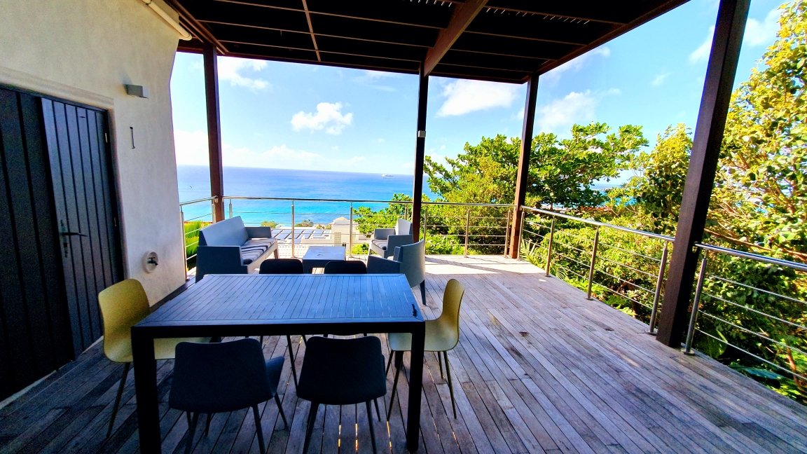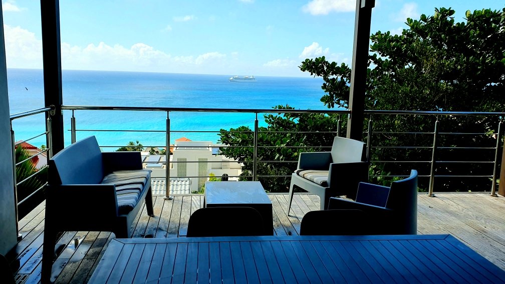 Perched atop the best residential area on the island, this residence offers a 180-degree panoramic view of Pelican Key residences and the mesmerizing turquoise Caribbean Sea. Located a mere 600 meters from the beach, the property enjoys a prime position just 15 minutes from the airport and 20 minutes from both Philipsburg, the Dutch side capital, and Marigot, the French side capital. Revel in the luxury of an ocean view, complemented by a charming patio, convenient parking for one vehicle with a paved driveway, 110V electricity, a split air conditioner, and the ease of a fully furnished space. This apartment is a harmonious blend of comfort and style in an idyllic island setting.