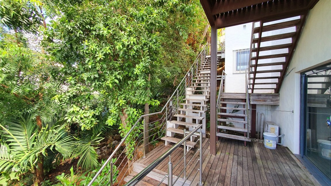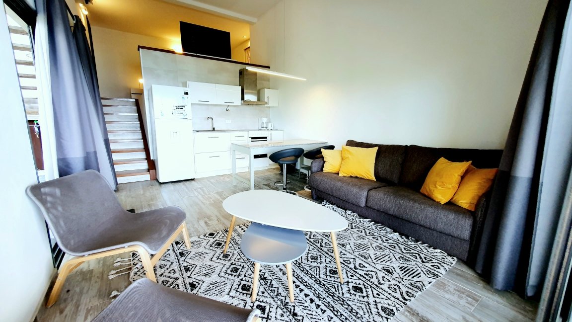 Behold this exquisite apartment, a true gem featuring one bedroom nestled upstairs and a spacious terrace, providing the perfect vantage point to unwind and soak in the breathtaking ocean views. The bedroom, cleverly designed as a “half” mezzanine above the living room and kitchen, adds a touch of modern elegance to the space. Equipped with a convenient laundry area and an expansive ocean-view terrace, the apartment boasts aluminum sliding doors and windows, along with a “reinforced” stylish wooden entrance door for added safety.
