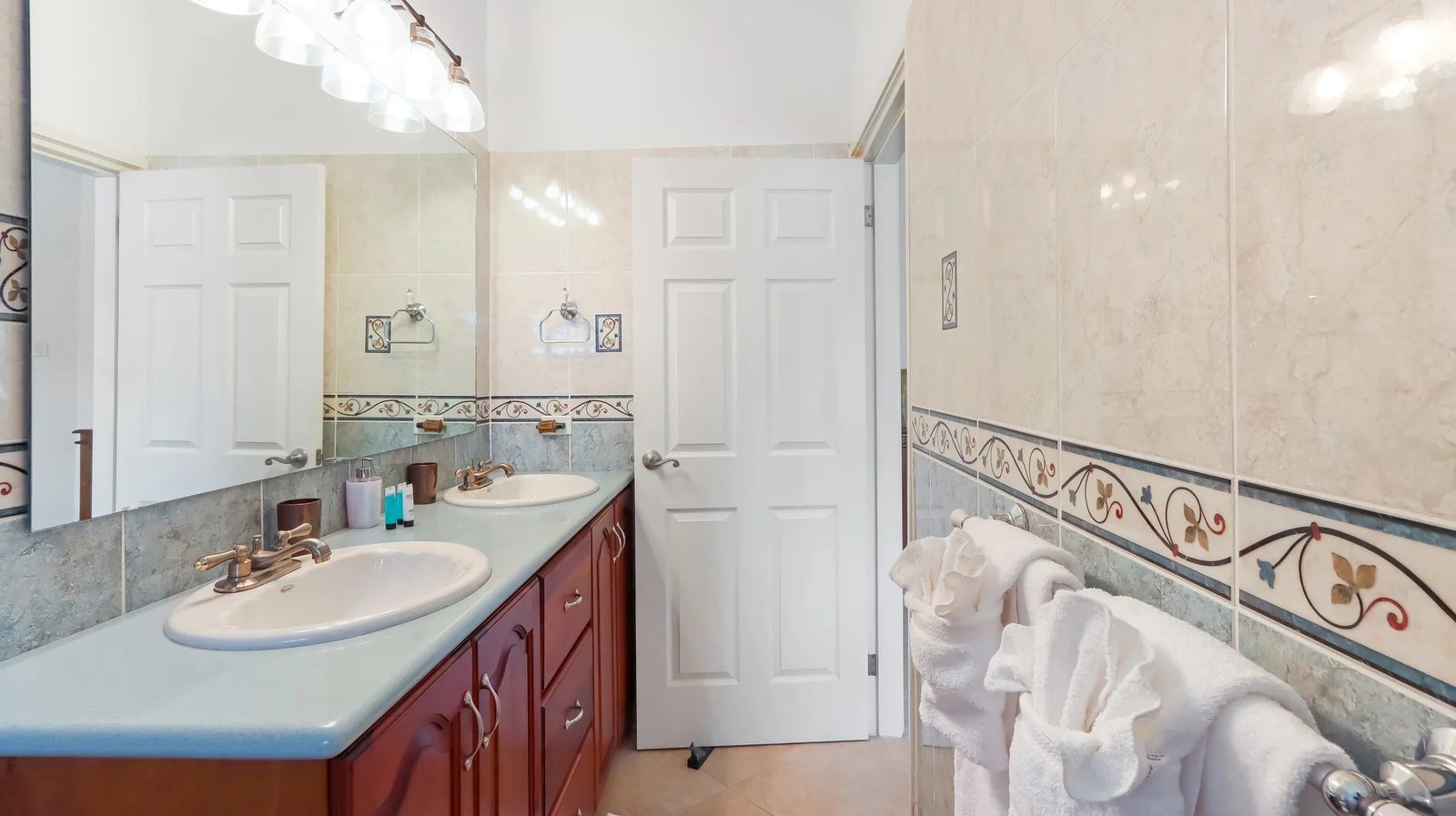 Bedroom 2 – Experience comfort in the second bedroom with a king-size bed, ample closet space, and a private en-suite bathroom with shower and double vanity sinks.